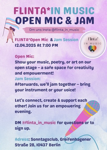 DM @flinta_in_music, wenn du beim Open Mic dabei sein willst 💜